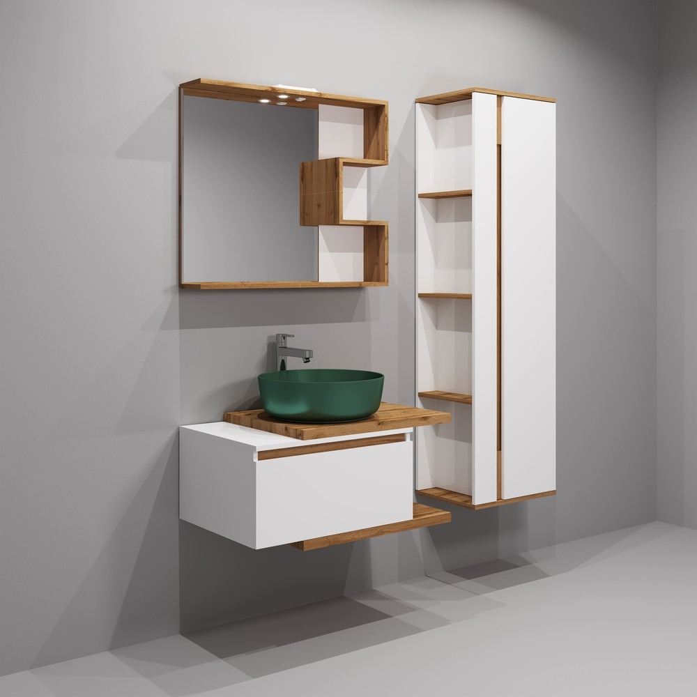 Зеркало EvaGold Forest 80 см EG010446, белый/дуб вотан