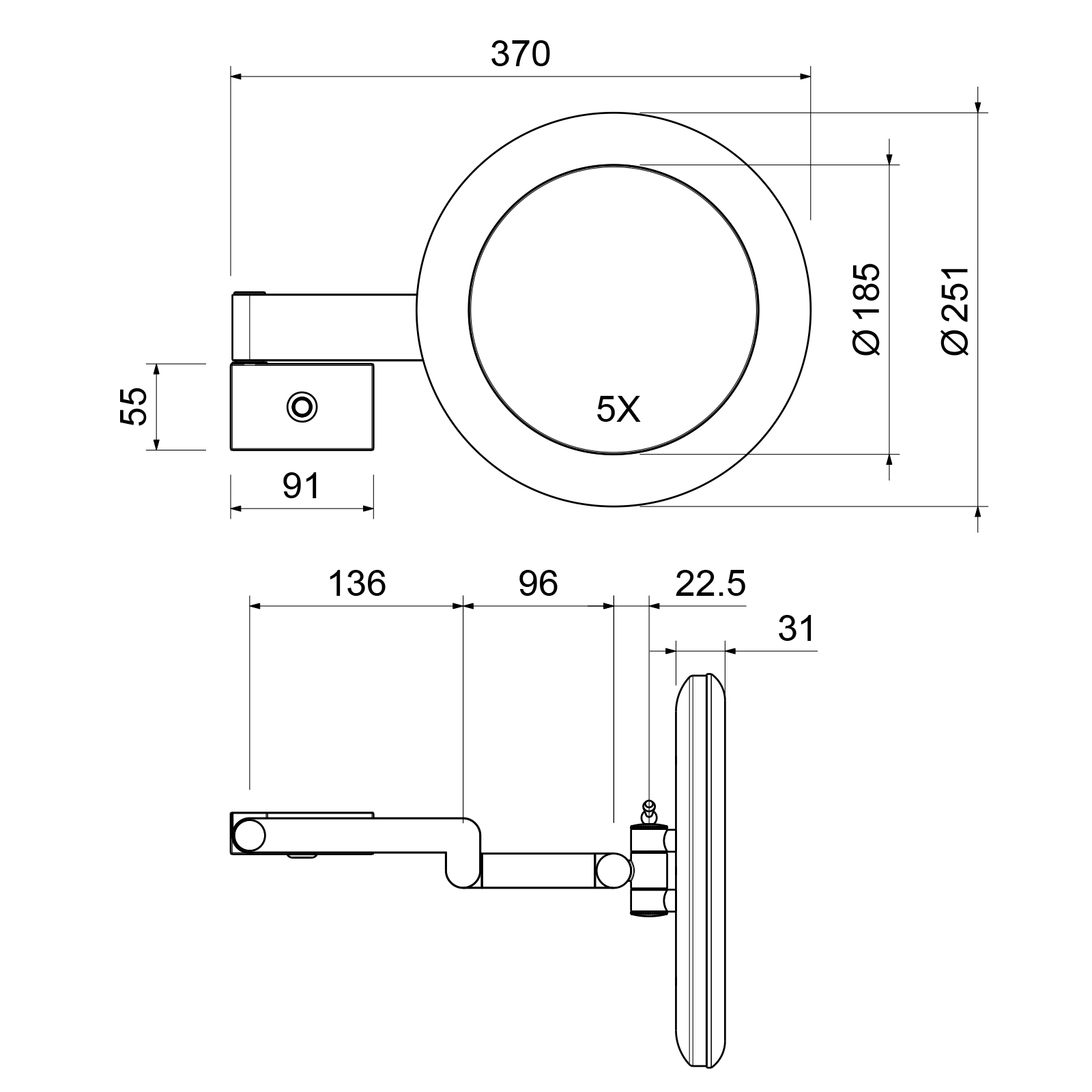 Зеркало Saona 13374 предназначено для использования в ванной комнате. Главное назначение зеркала - помощь в проведении косметических процедур. Функция 5 кратного увеличения поможет рассмотреть отдельные участки лица. Диаметр зеркала 251мм. Подсветка зеркала работает от сети 220Вт.