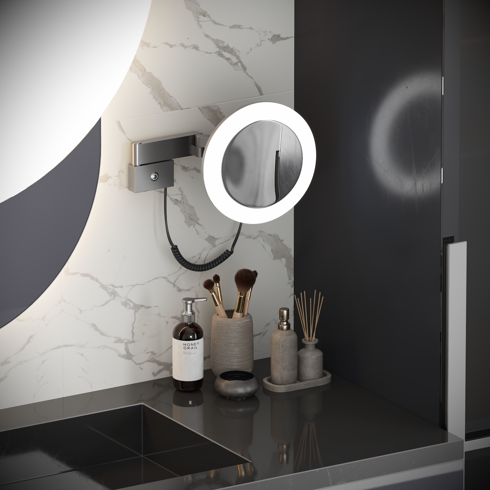 Зеркало Saona 13374 предназначено для использования в ванной комнате. Главное назначение зеркала - помощь в проведении косметических процедур. Функция 5 кратного увеличения поможет рассмотреть отдельные участки лица. Диаметр зеркала 251мм. Подсветка зеркала работает от сети 220Вт.