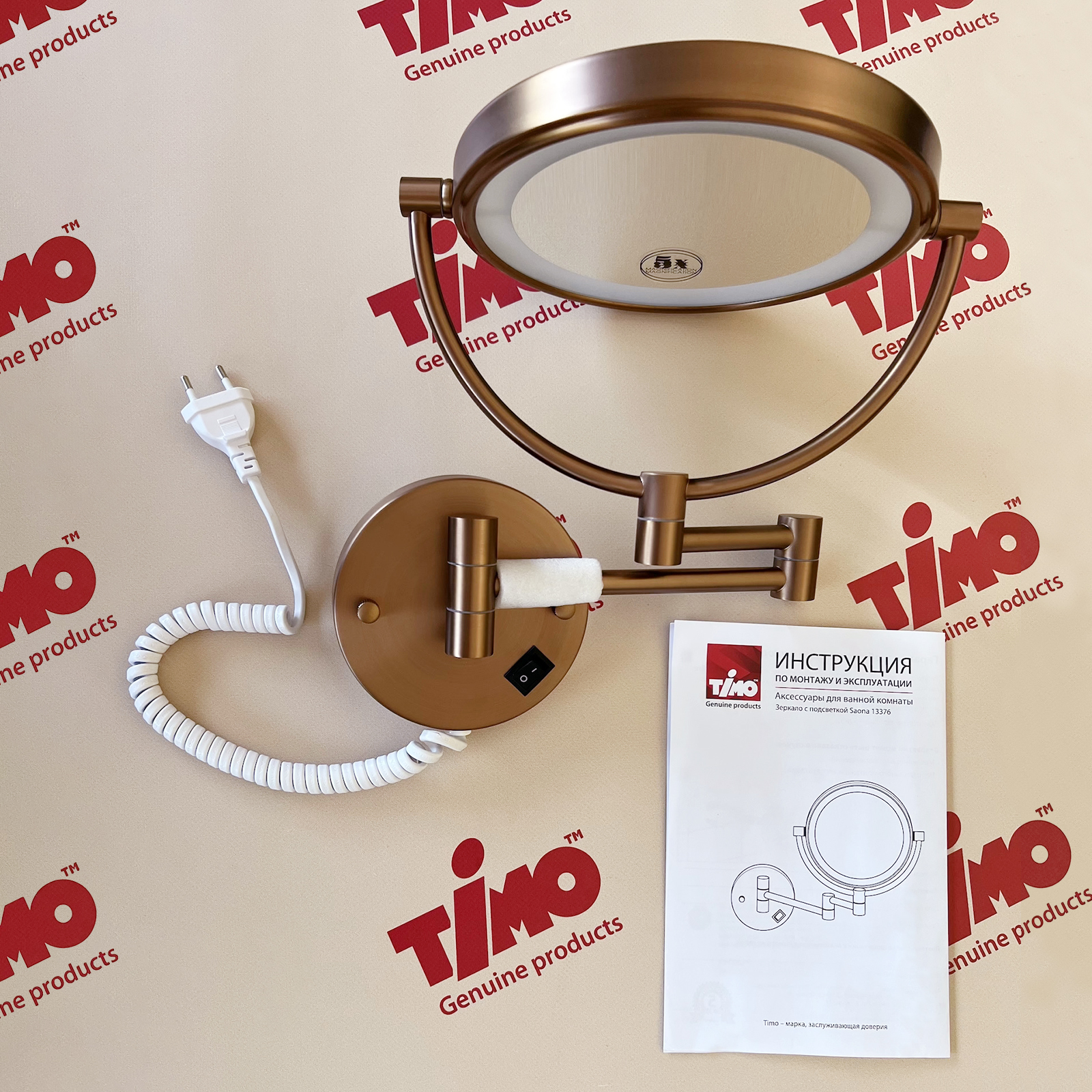 Зеркало косметическое Timo Saona 13376/19 с подсветкой, 5-х кратное увеличение, материал латунь, цвет розовое золото.