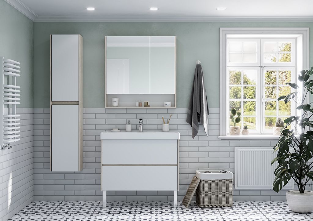 Зеркало-шкаф Акватон Сканди 85 см 1A252302SDB20, белый/дуб верона