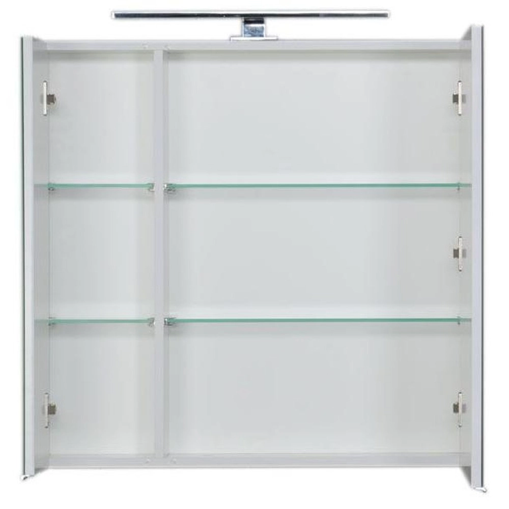 Полки зеркала-шкафа выполнены из специального ударопрочного стекла. Мягкое, в то же время достаточное по силе освещение создают экономичные внешние LED-светильники.