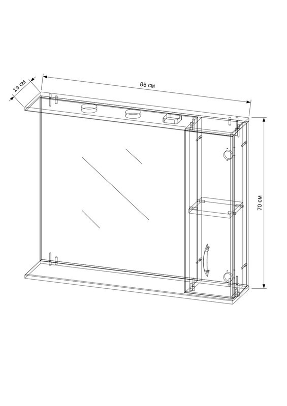 Зеркало-шкаф EvaGold Alegra EG010282 с подсветкой 85х72,5х19 см, правый, цвет белый.
