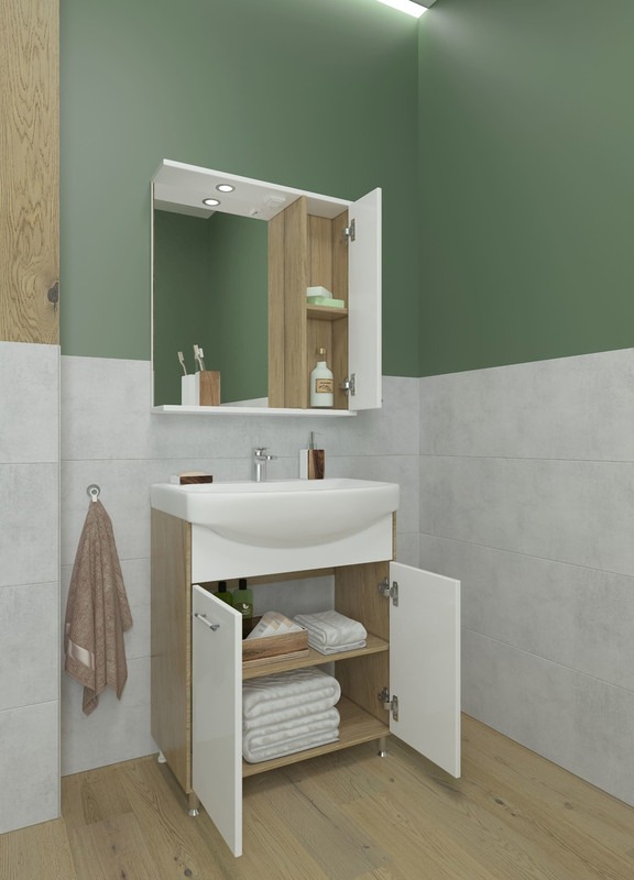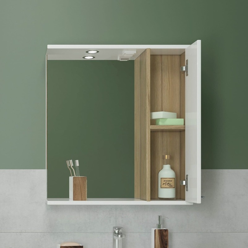 Зеркало-шкаф EvaGold Шимо EG010074 с подсветкой 50х72х19 см, правый, цвет шимо.