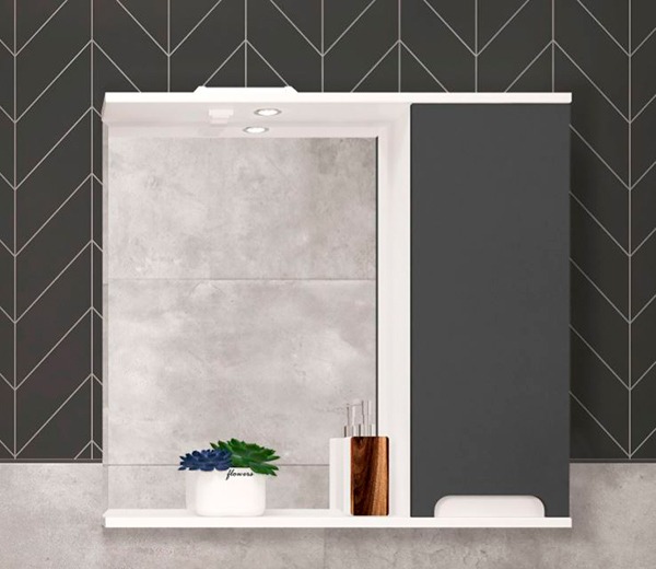 Зеркало-шкаф EvaGold Vesta EG010227 с подсветкой 75,2х70х16 см, правый, цвет графит софт тач.