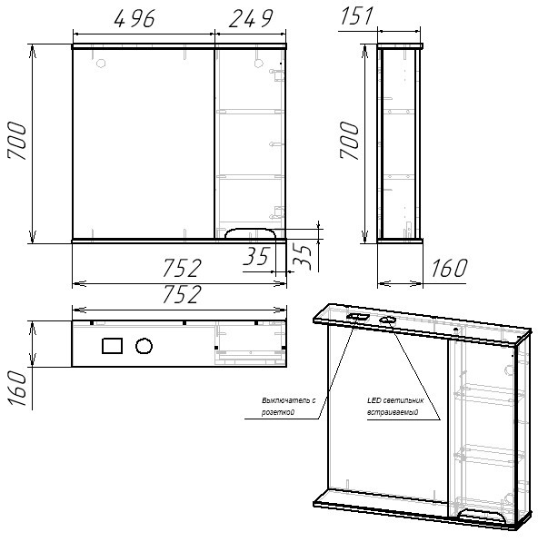 Характеристики зеркальный шкаф EvaGold (EG010419)