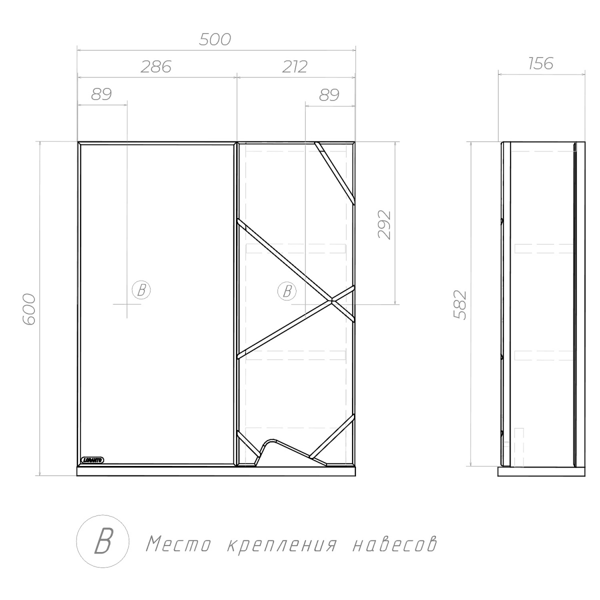 - Размеры зеркала-шкафа составляют 500х156х600 мм, что позволяет компактно разместить его даже в небольшом помещении.